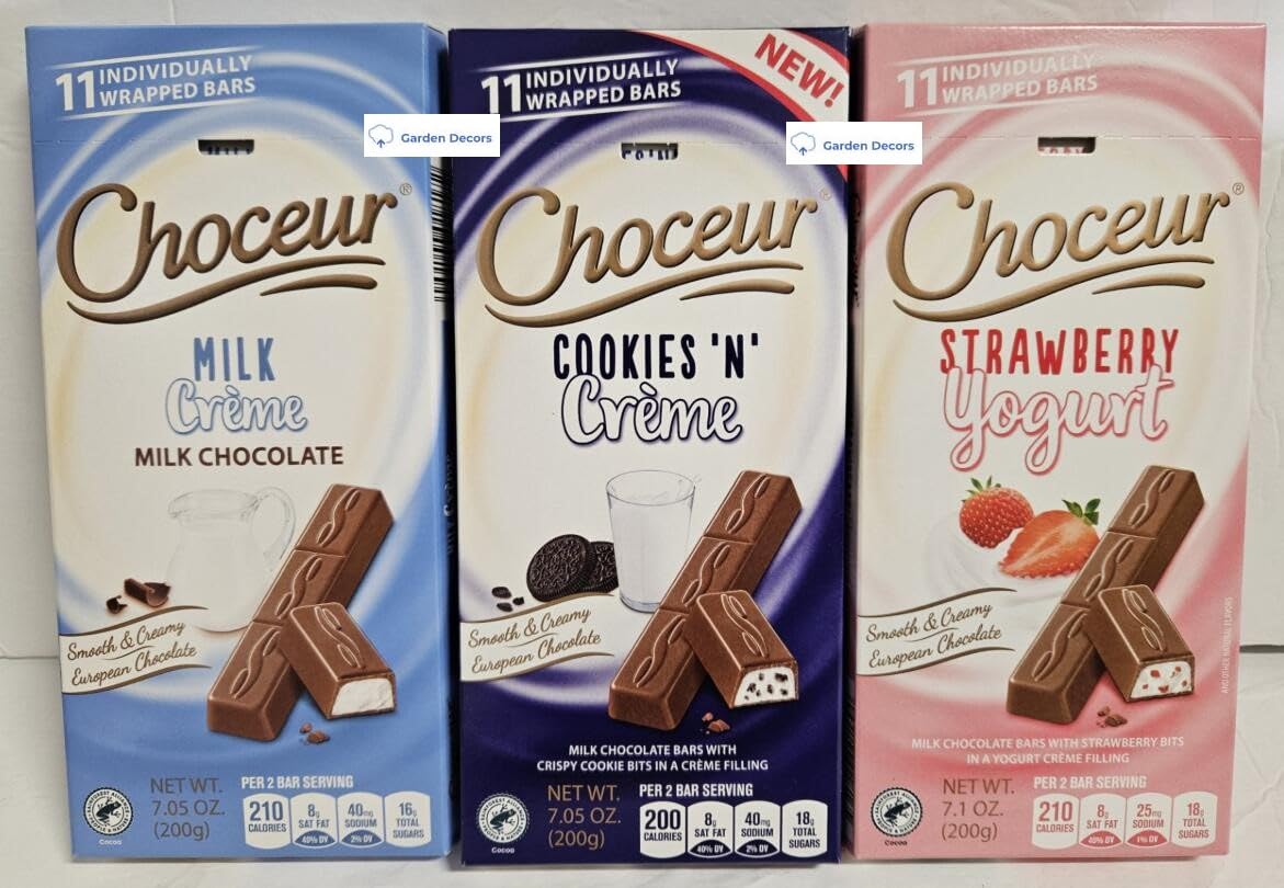 Choceur European Milk Chocolate Bars set: Coffee & Cream + Milk Crème + Strawberry and Yogurt – (one bar each – Total 3)